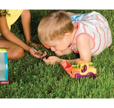 Round up your favorite critters for a closer look with the Bug Bungalow from B. toys! This insect catching kit comes with everything your child needs to inspect bugs – a pair of tweezers to catch the insects, a case to hold them, a container with a magnifying lid to examine them, and a magnifier to see all of the little details. The mesh case keeps bugs safe and secure, while the swing-up door makes it easy to release them back into the wild when the inspection is over. And your kiddo doesn’t have to stay in one spot – they can grab the handy handle and take their kit wherever they go! Catching critters also keeps children active and helps them learn more about the mini wonders of the natural world. Recommended for kids 3 years and over.