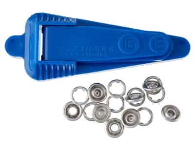 An easy-to-use tool specially designed for attaching snap fasteners to clothing, drapery and other crafts. Applies size 15 and 16 snap fasteners. Best used on lightweight fabric. 4 sets of snaps1 tool . Loops & Threads Snap Fastener Kit Color: Blue