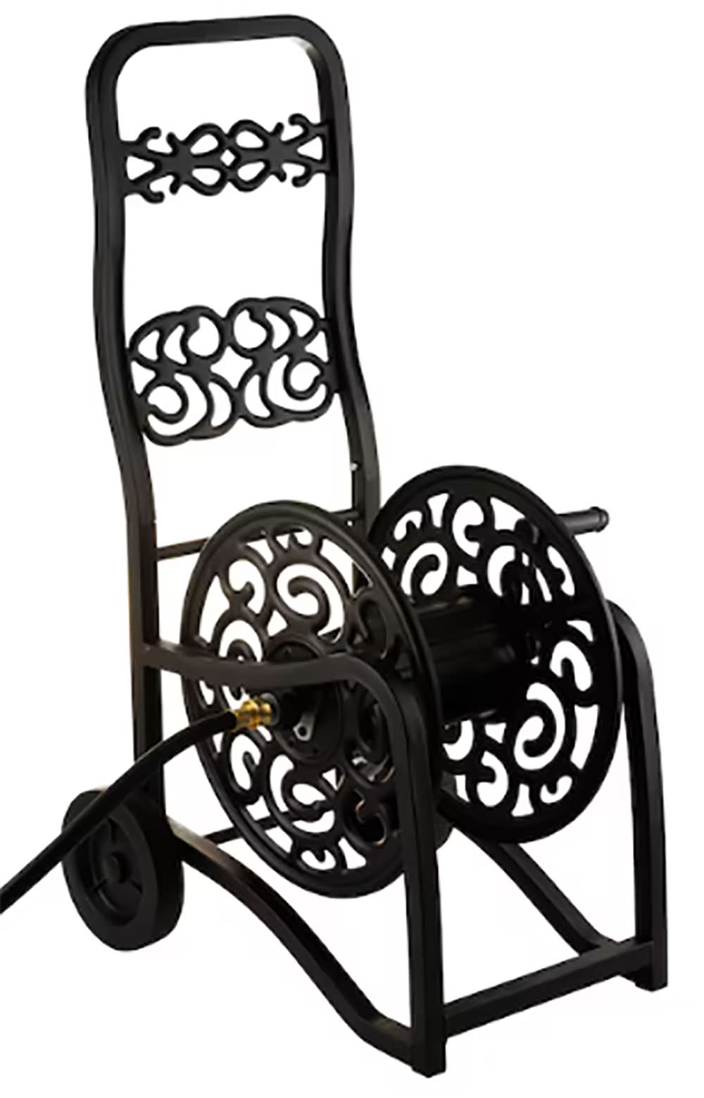 Holds up to 200ft of 5/8 in hose. Flat free tires. Durable powder coated finish. For CA Residents Only: WARNING: This product can expose you to chemicals including Lead which are known to the State of California to cause cancer and birth defects or other reproductive harm. For more information go to www.P65Warnings.ca.gov. Color: Black