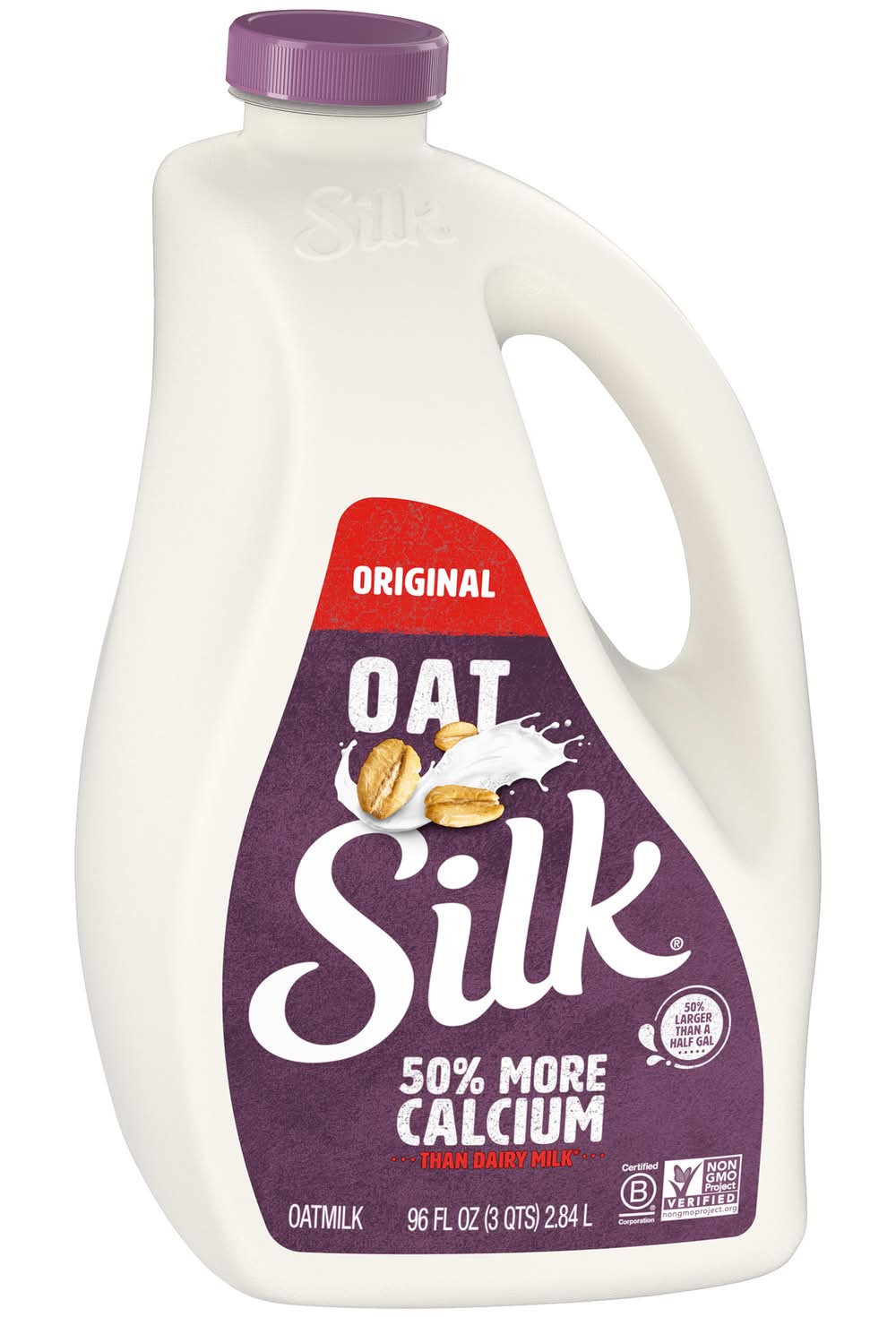 Creamy, dreamy, dairy-free-y. That’s what you get with Silk Original Oatmilk. With the power of the humble oat, this plant-based oatmilk offers delicious creaminess with none of the moo. Transform your morning cup of coffee, pour it on your cereal, or drink it straight from a glass. You really can’t go wrong. Silk Oatmilk is totally dairy-free, gluten-free, and cholesterol-free. Plus, there are no artificial colors or flavors because it’s delicious, and nutritious, too. Each serving provides vitamins A, D, B2, and B12, and contains 50% more calcium than dairy milk*. With this 96oz size, it gives you 50% more goodness than a half-gallon, great for sharing with family or friends. And it doesn’t just taste good. It does good too. We restore water to rivers drop for drop, putting back what is used to grow our oats. *Silk Oat has 460mg of calcium per cup, reduced fat dairy milk has 293mg calcium per cup. USDA ARS. FoodData Central, 2020.