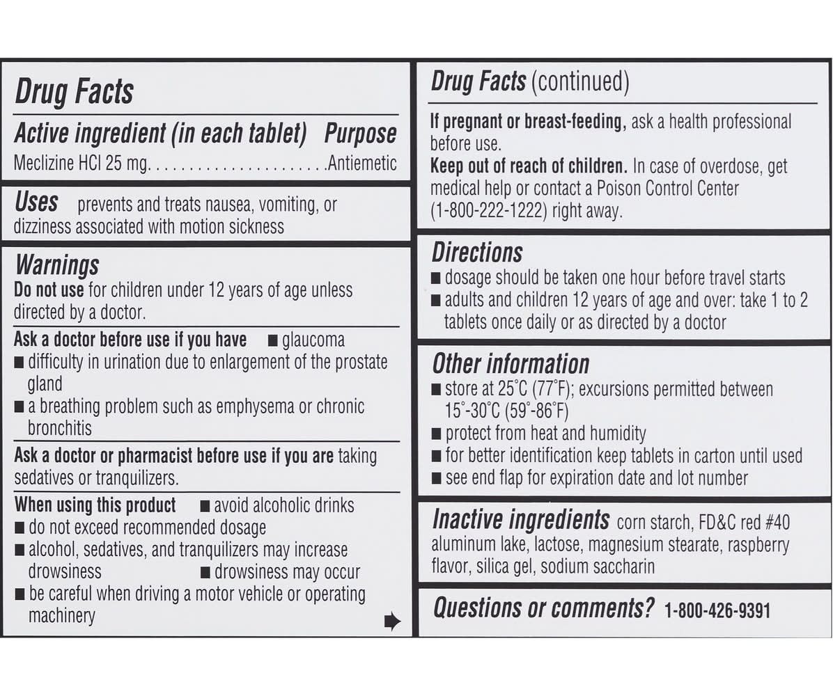 Motion Sickness Relief, 25 mg, Raspberry, Chewable Tablets