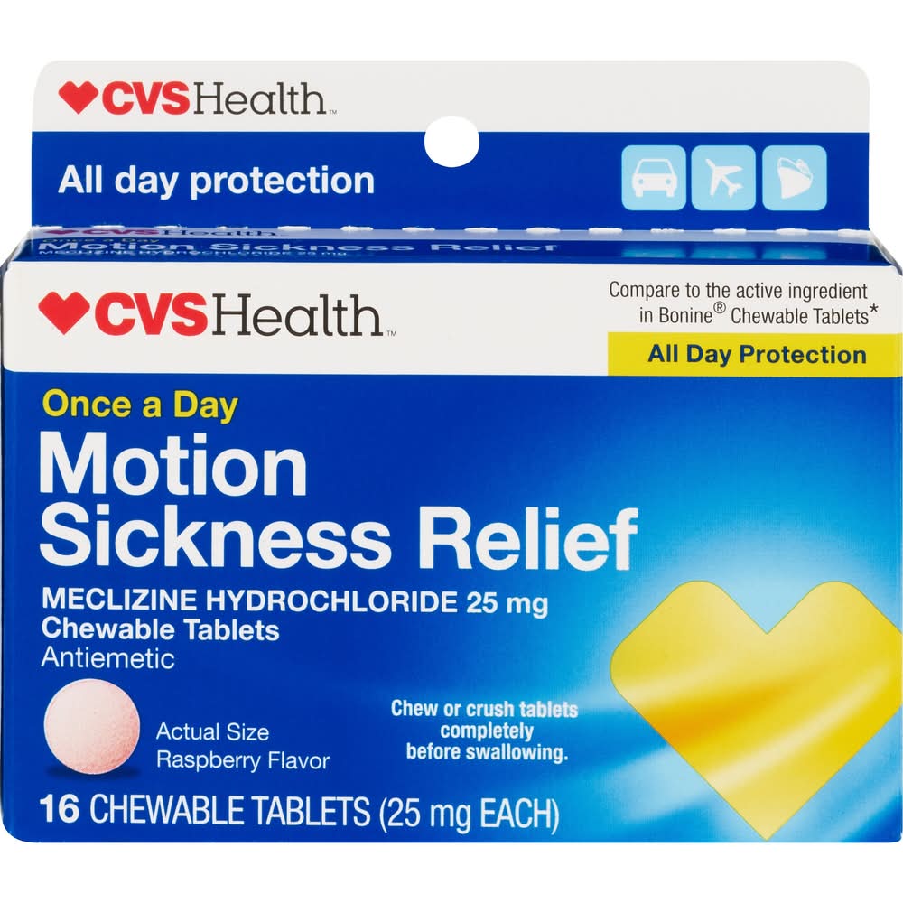 Your CVS Health Motion Sickness Relief Chewable Tablets Raspberry delivery options may vary depending on where you are in a city. Enter your address to browse CVS Health Motion Sickness Relief Chewable Tablets Raspberry delivery options near you.