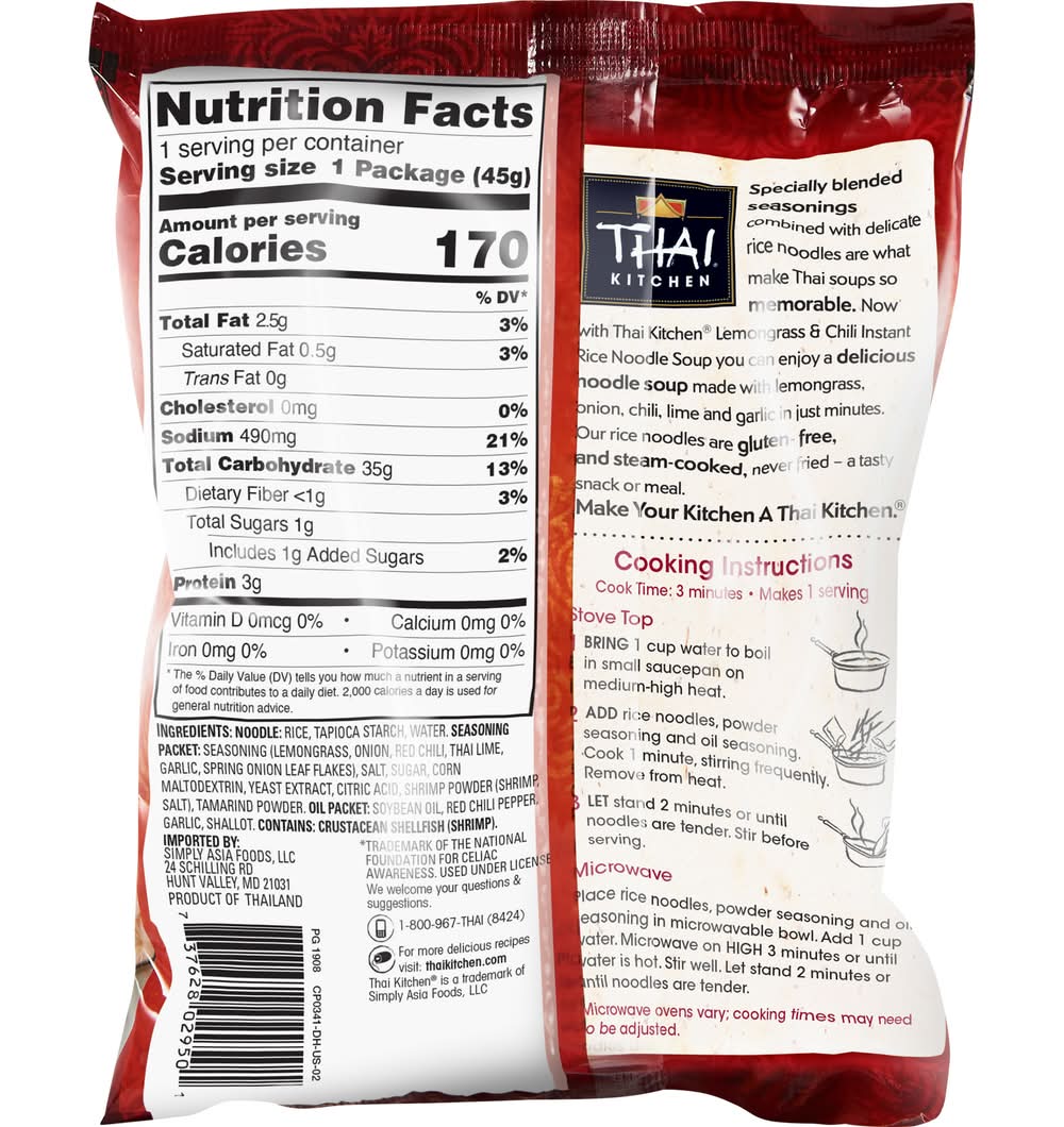 Thai Kitchen Medium Instant Rice Noodle Soup, Lemongrass & Chili (1.6 oz)