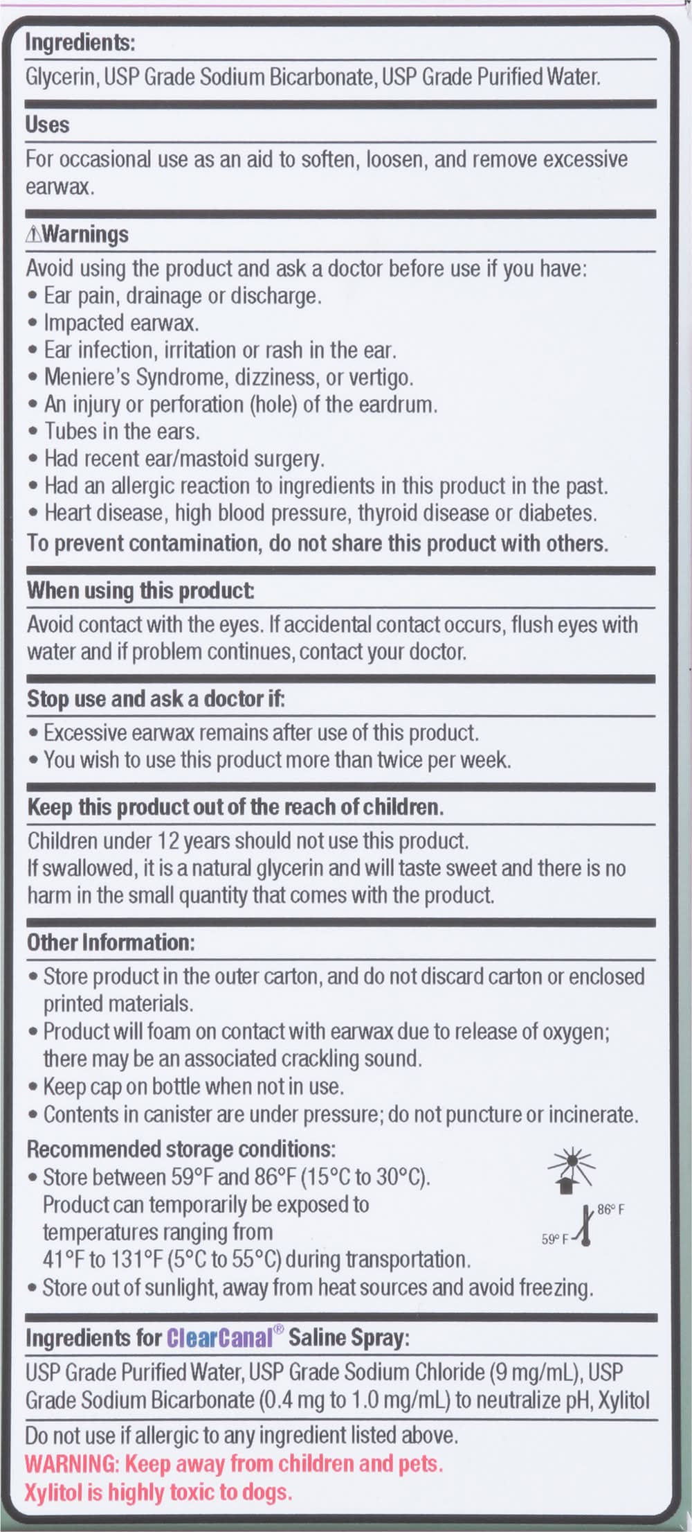 Directions: Directions: This products is intended for use on adults and children over 12 years of age. Consult your physician for use on children under 12. Tilt head sideways and place 10-20 drops of ClearCanal Glycerin drops into each ear canal by squeezing the plastic dropper bottle provided with this system. The tip of bottle should not enter ear canal. Keep drops in ear for 10 minutes by keeping head tilted or placing enclosed ear plugs in ears. Remove ear plugs. Attach the special drainage collection cup to the canister to avoid the rinse solution dripping out of your ear. Flush ears with the NeilMed ClearCanal specially designed actuator nozzle for 10 seconds or as desired to achieve adequate flushing. Gently tilt head side to side to drain out residual liquid and dry ears with a clean dry towel wrapped on a finger. On rare instances, individuals may experience pressure in the ears. If this occurs, stop rinsing. If symptoms, persists please seek medical attention or contact. NeilMed directly. Some users prefer to use the bulb syringe, so we are providing a soft medical grade silicone ear syringe and a tip. The syringe is specially designed to easily pull apart for cleaning. Please use only warm purified water and body temperature which is around 98.6 degrees F or 37 degrees C. All the components of the syringe can be cleaned with soap and a water and sterilized by placing in boiling water for five minutes. Use up to twice per week, or as recommended by your physician. Please read complete directions before using product. Contains 5 complete treatments.