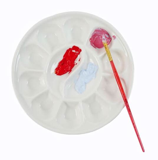 This round porcelain palette has 12 wells for creating custom paint color mixes. You can use this palette with watercolor, gouache, acrylic, tempera, oil paints and more. Smooth, easy to clean surface. For use with various paints like watercolor, gouache paint, acrylic, tempera paints and more.