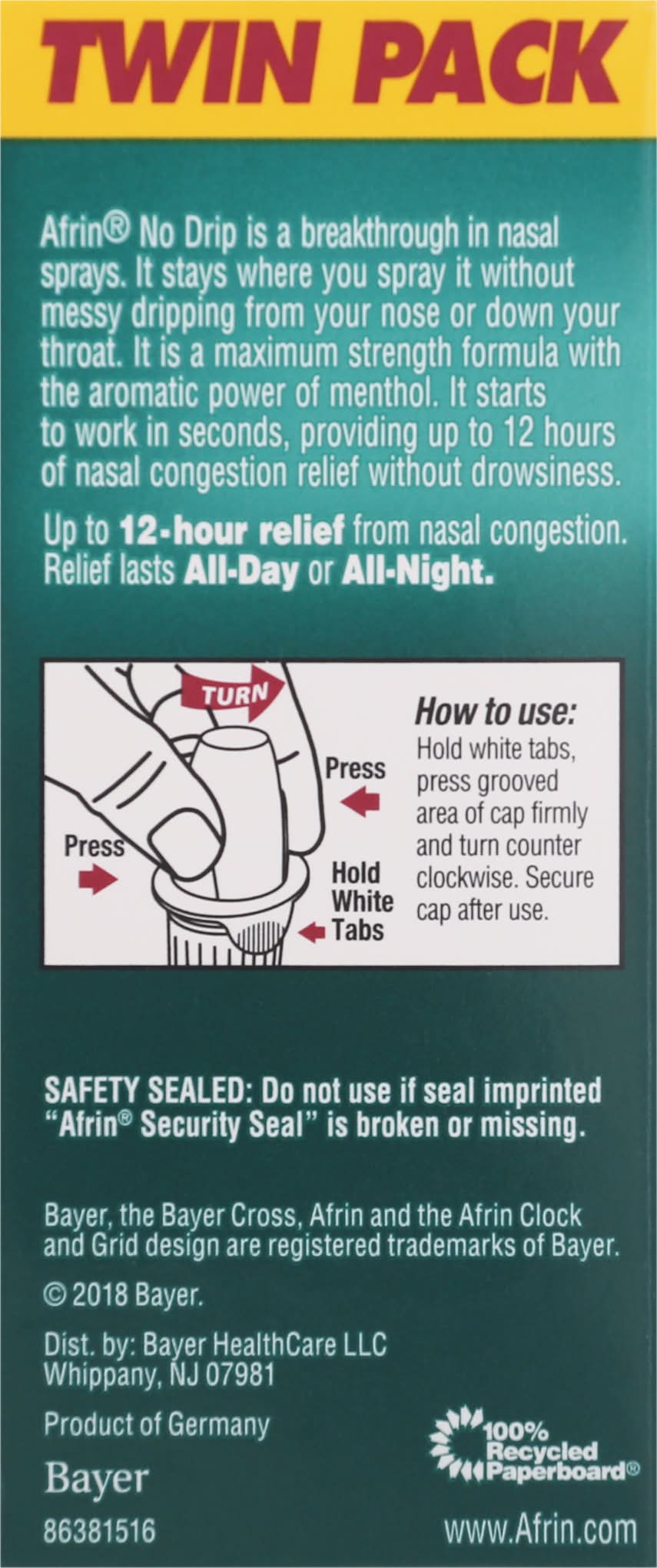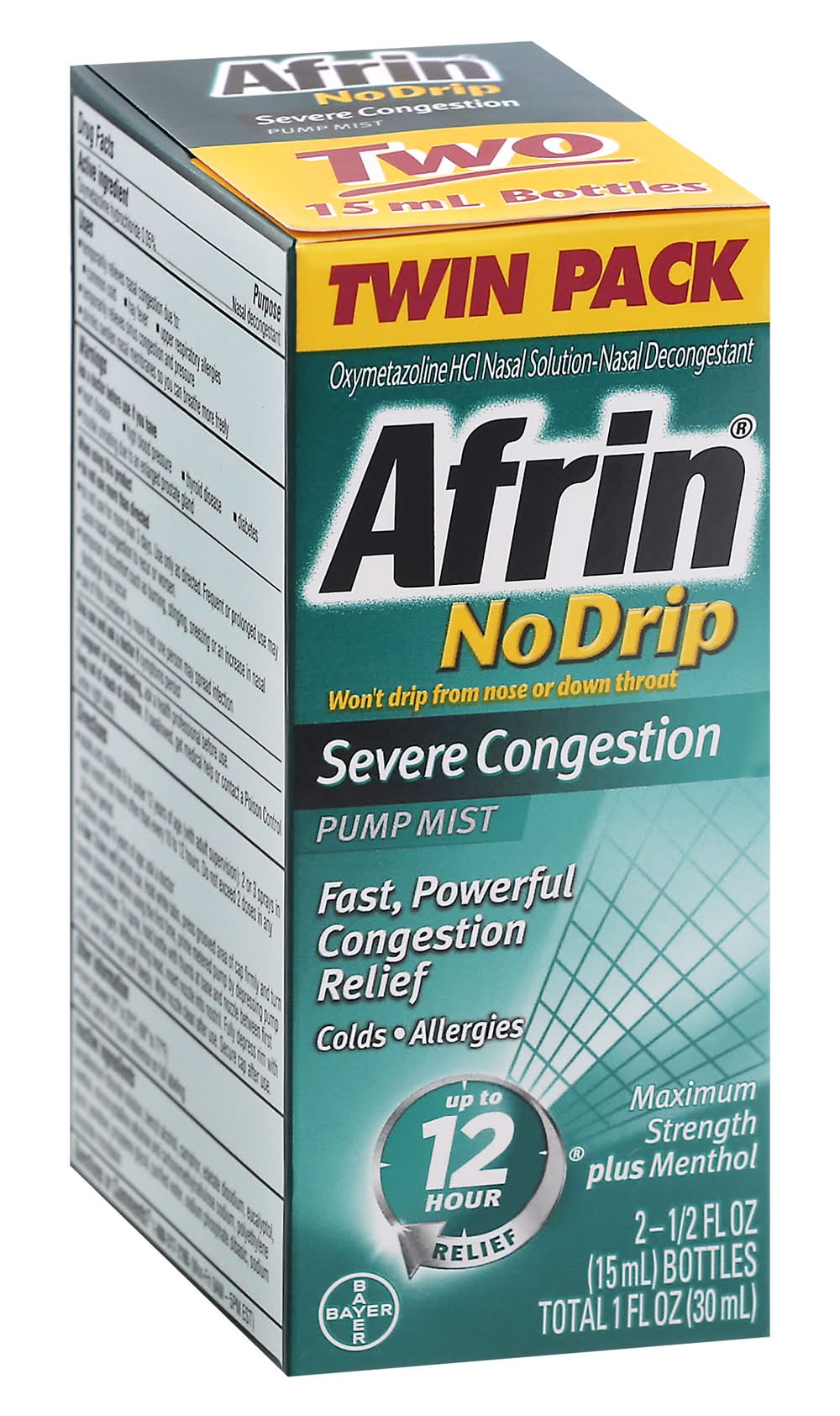 Afrin No Drip Severe Congestion Pump Mist Nasal Spray (2 x 0.5 fl oz)