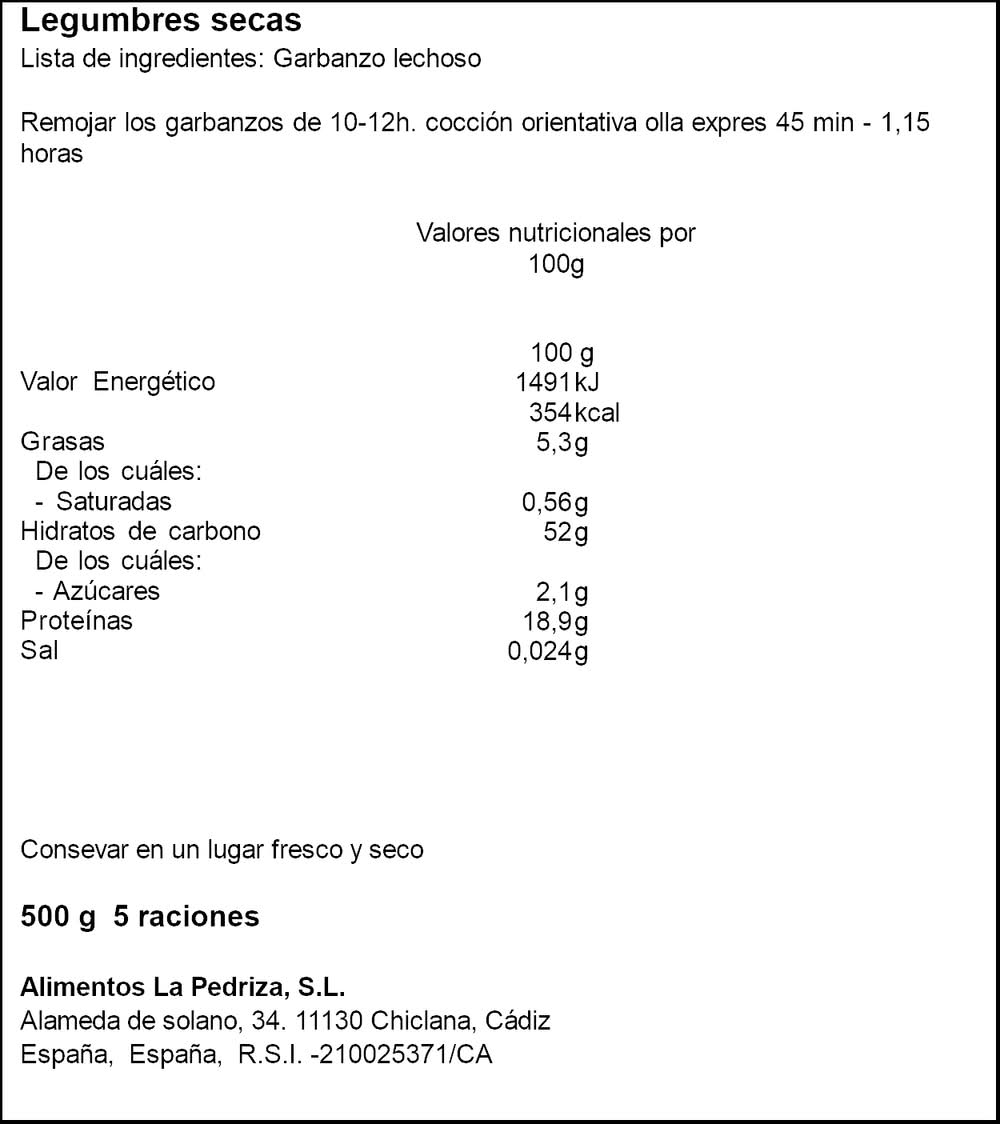 Garbanzo lechoso · La Pedriza (500 g)