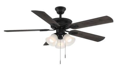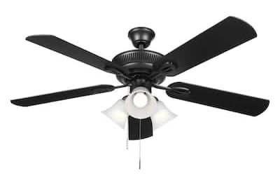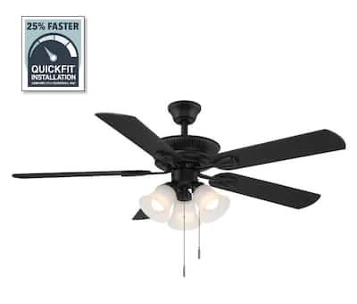 HAMPTON BAY Led Indoor Ceiling Fan With Light and Pull Chains, 52 in, Matte Black