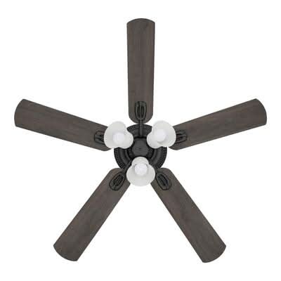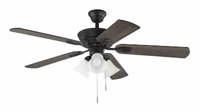 The Hampton Bay Glendale III Matte Black Fan is the perfect addition to your home decor. Its matte black finish and 5-reversible matte black/dark gray walnut blades create a handsome, transitional look that will complement any style. With its 3-speed reversible motor, you can easily control the speed and airflow to suit your needs. Plus, the Glendale III includes a 3-Light kit with frosted twist-and-lock glass shades and easy operation by use of pull chains. • Color: Matte black • Size: 52 in