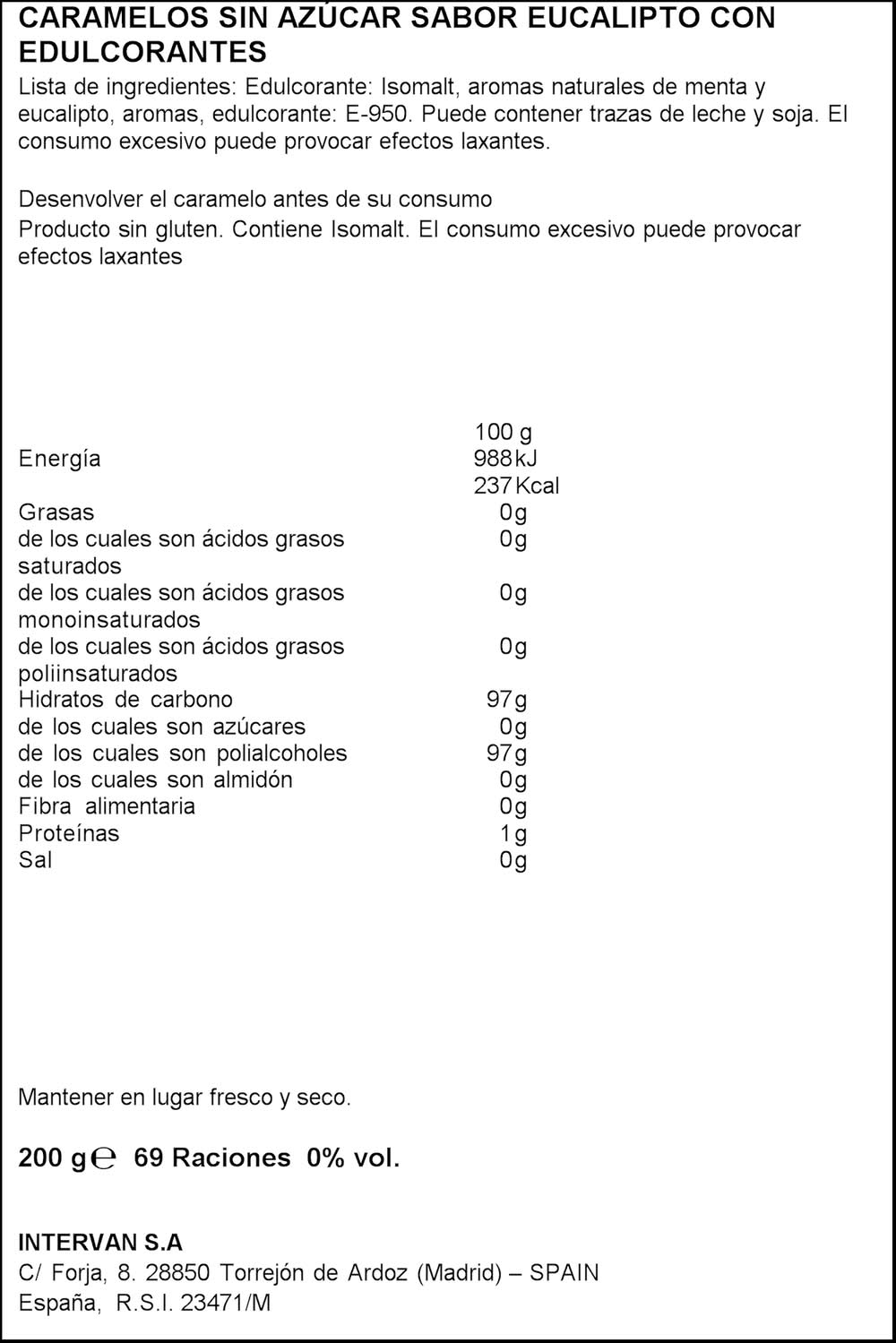 • Alcohol by volume: 0% • INTERVAN S.A, C/ Forja, 8. 28850 Torrejón de Ardoz (Madrid) - SPAIN