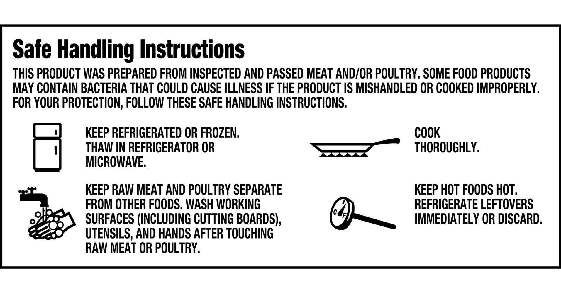 Directions for use: Safe Handling Instructions: This product was prepared from inspected and passed meat and/or poultry. Some food products may contain bacteria that could cause illness if the product is mishandled or cooked improperly. For your protection, follow these safe handling instructions. Keep refrigerated or frozen. Thaw in refrigerator or microwave. Keep raw meat and poultry separate from other foods. Wash working surfaces (including cutting boards), utensils and hands after touching raw meat or poultry. Cook thoroughly. Keep hot foods hot. Refrigerate leftovers immediately or discard. For food safety cook to 165 degrees F. Cooking Instructions: Cooking times may vary. Instructions are based on thawed (not frozen) product. Grill: Grill for approx. 20-30 minutes, turning every 5 minutes. Cook until internal temperature of the meat reaches 165 degrees F. Bake: Preheat oven to 325 degrees F. Bake in pan for approx. 50-60 minutes. Cook until internal temperature of the meat reaches 165 degrees F. Broil: Place in pan 4 in. from heat. Broil for approx. 20-30 minutes, turning every 5 minutes. Cook until internal temperature of the meat reaches 165 degrees F using a meat thermometer. Keep refrigerated. Peel at corner to open. Storage recommendation: Keep refrigerated.