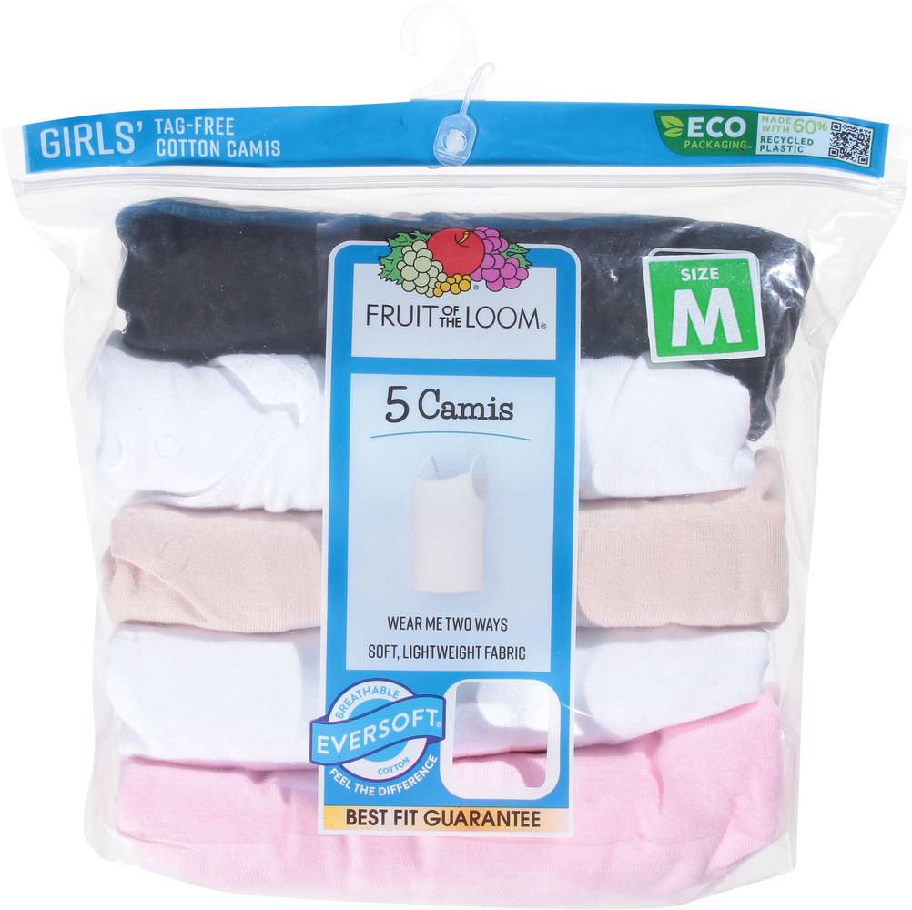 Fruit of the Loom Girl's Soft & Light Weight Fabric Camis, M, Assorted (5 ct)