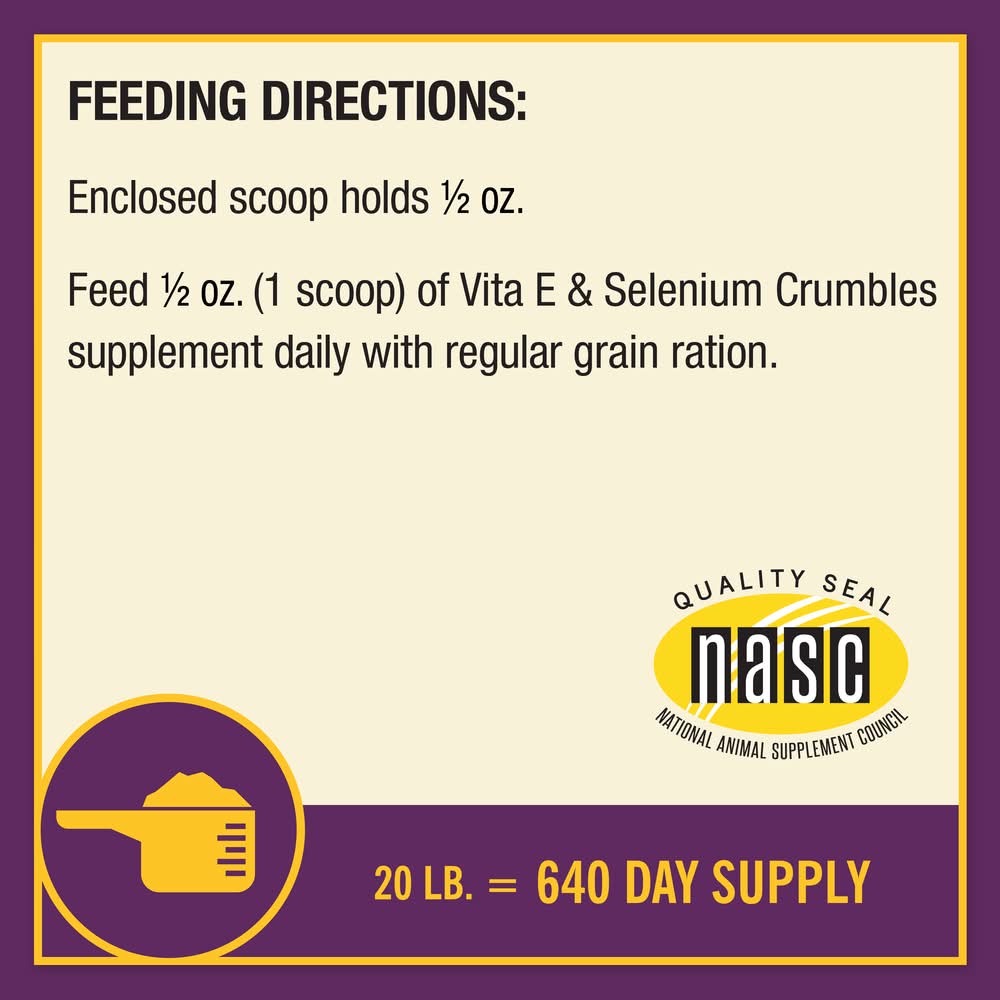 Horse Health Vita-E & Selenium Crumbles Supports Optimal Muscle Health in Horses (20 lbs, 640 ct)