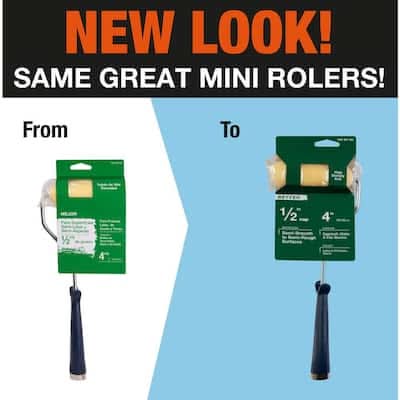 4 in. mini roller has a 1/2 in. nap and comes on an 11 in. long roller frame. This roller and frame assembly is the perfect choice for smaller projects, tight confined spaces and trim work. The professional-quality cover is made from a medium density polyester knit fabric and is for use on smooth to semi-smooth surfaces. Size: 4 In X 1/2 In