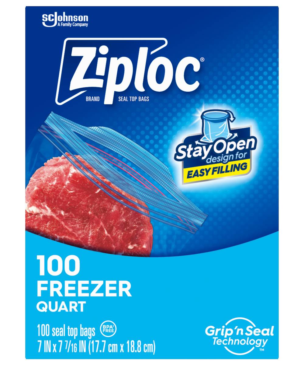 Ziploc Grip 'N Seal Technology Freezer Bags, 7x7 7/16 in (100 ct)
