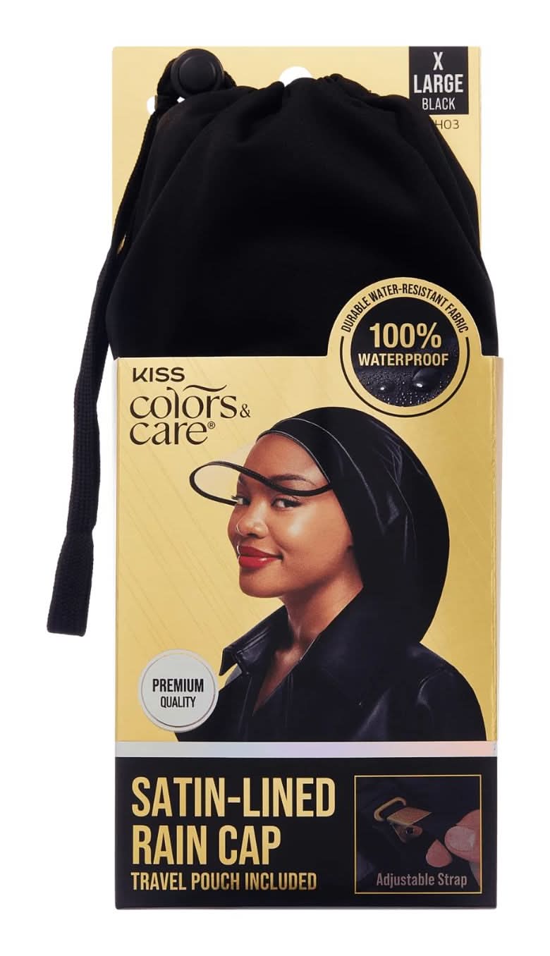 KISS Colors & Care Satin-Lined Premium Rain Cap, XL, Black