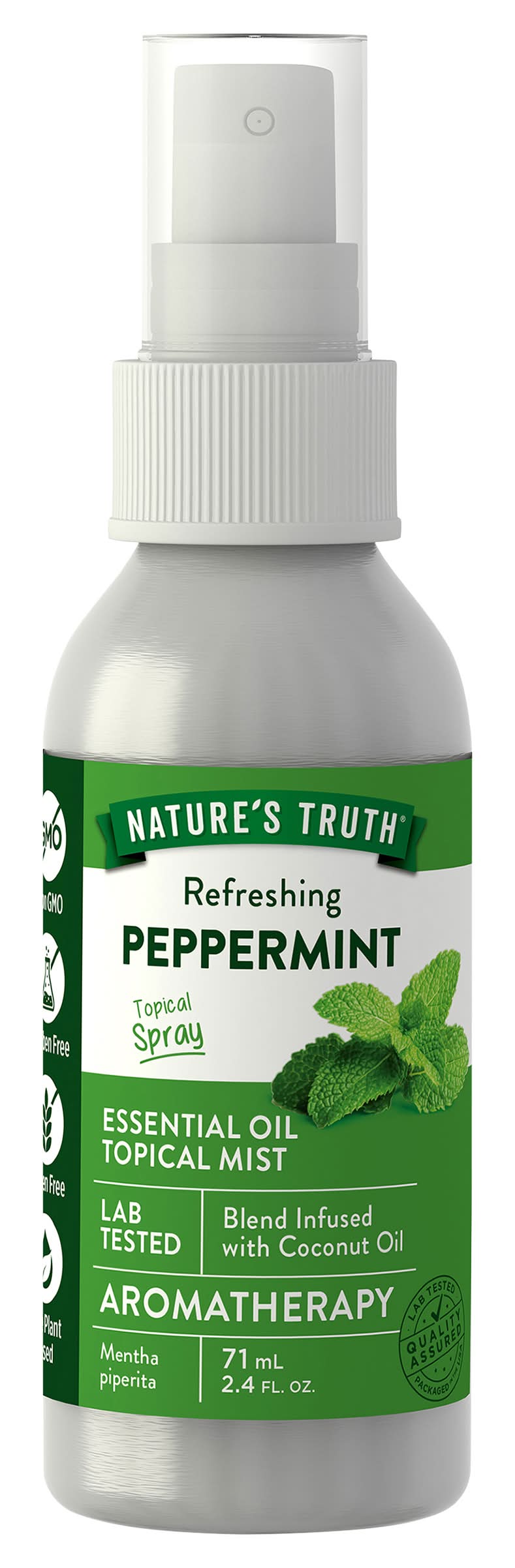Use this refreshing essential oil mist as an aromatic hydrating body spray, in bath or to freshen up any room. spray in bath or to freshen up any room. spray a light mist over pillow, sheets or in any room or on your body for an authentic aromatherapy experience. this travel size mist is perfect for keeping in your purse, car, gym bag bathroom, kitchen, or office! shake well before use. to refill, combine 30 drops of nature's truth peppermint essential oil with 2 fluid ounces of water.