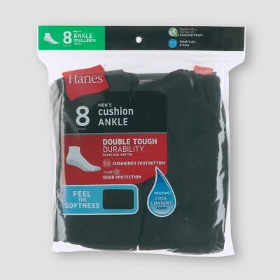 Hanes Cushions Ankle Socks, Men, 6-12, Black (8 ct)