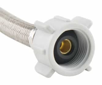 BrassCraft Speedi Plumb plus 1/2 in. Female Iron Pipe inlet x 7/8 in. Ballcock Nut outlet x 12 in. L flexible braided polymer water connector is corrosion resistant inside and out. Used to connect the water supply to your toilet, this connector features a high tenacity, multi-filament yar This product can expose you to one or more chemicals, including Lead, which are known to the State of California to cause cancer, birth defects or other reproductive harm. For more information go to www.P65Warnings.ca.gov • Color: Silver • Size: 1/2x7/8 in