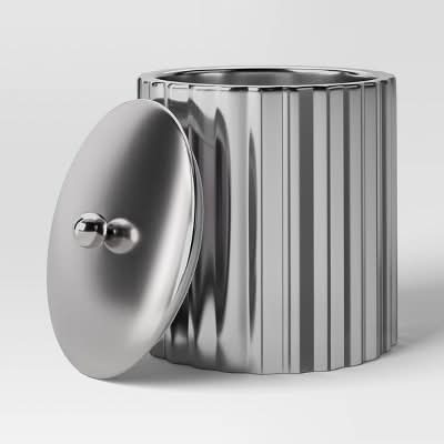 Serve and store ice in classy style with the 2.9-Liter Stainless Steel Double-Wall Ice Bucket from Threshold™. This ice bucket features a ribbed surface for an eye-catching look. Made of stainless steel with a double-wall construction, this 2.9-liter ice bucket includes a lid to help keep the contents covered. Threshold™: Looks like home, feels like you.