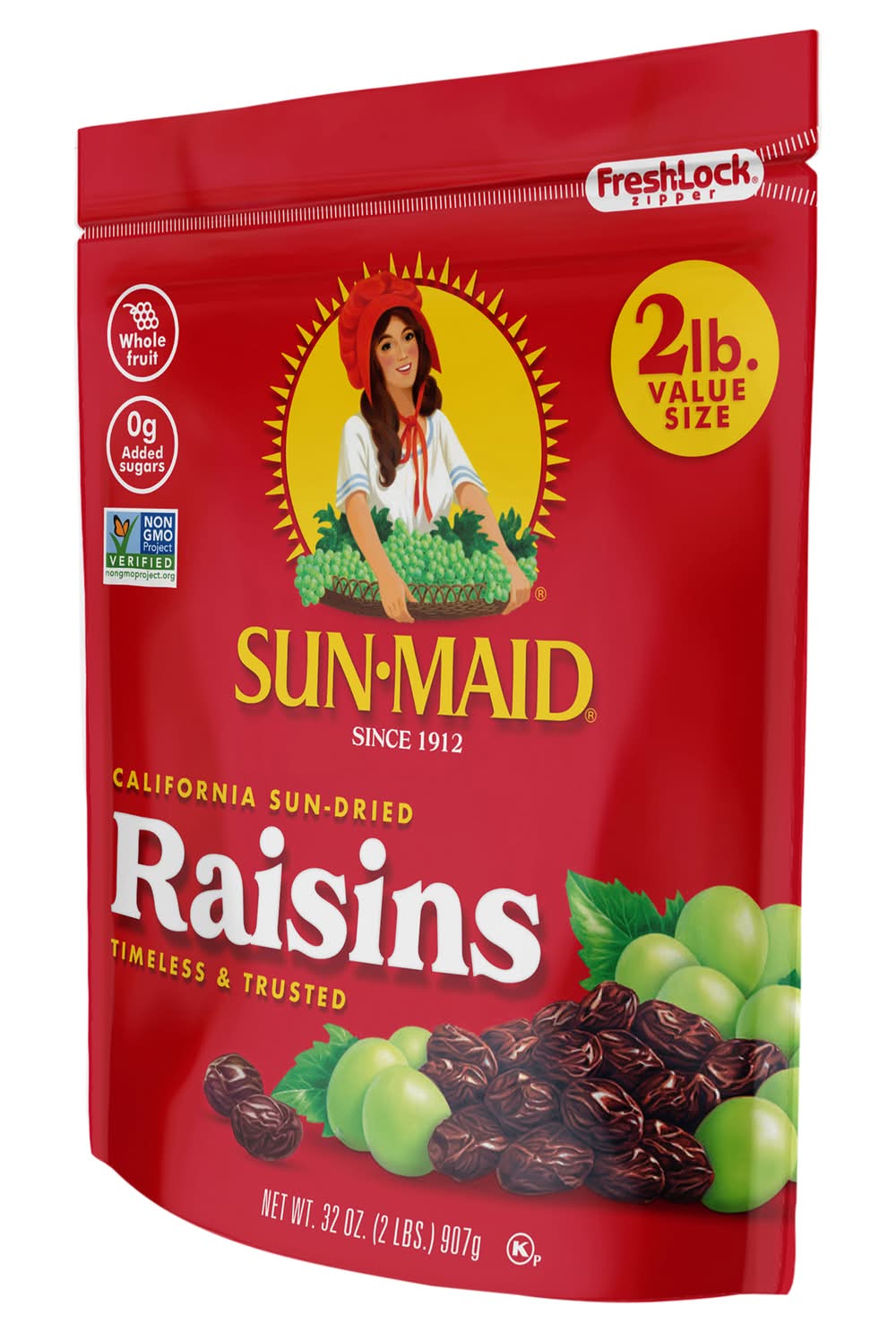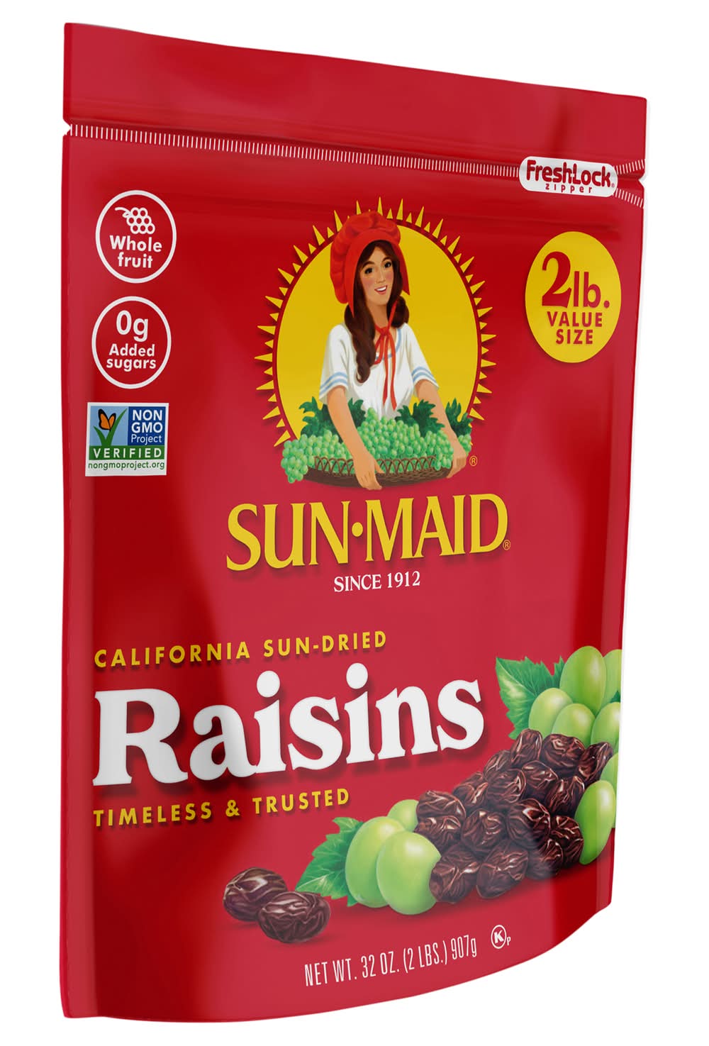 California Sun-Dried Raisins Value Size • Sun-Maid Growers of California, 13525 S. Bethel Ave,Kingsburg,CA,93631 • Packaging: Reusable