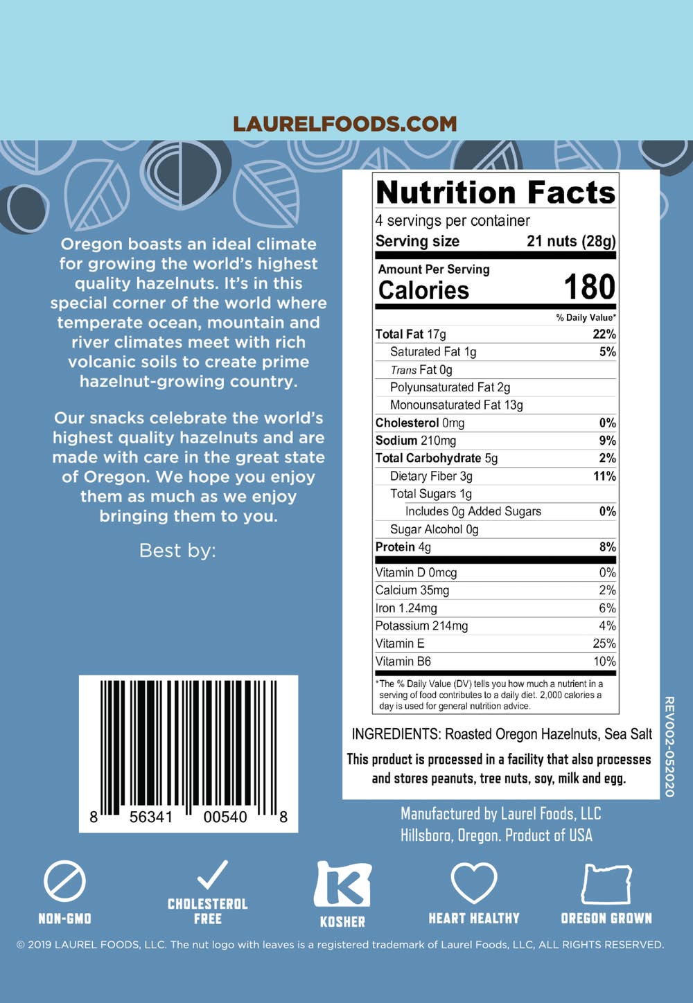 Laurel Food Roasted Oregon Hazelnuts With Sea Salt (4 oz)