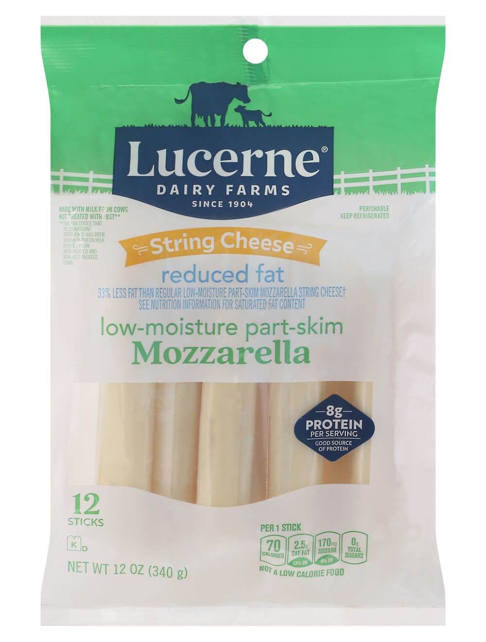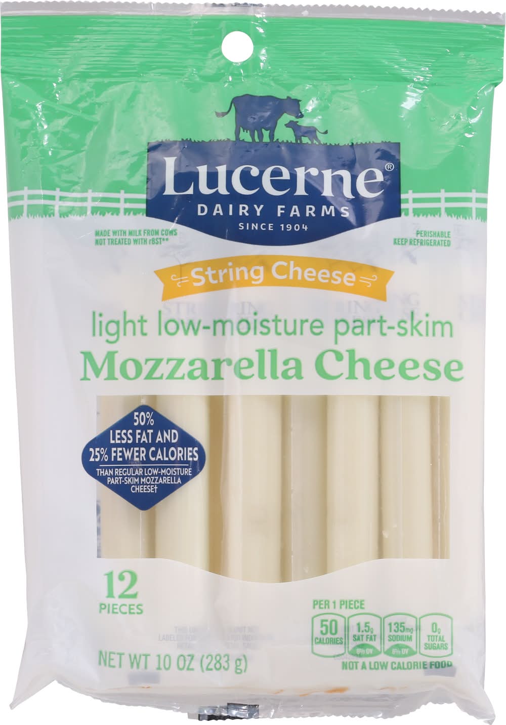 String Cheese, Part-Skim, Mozzarella, Light Low-Moisture • Lucerne Foods, Inc., PO Box 99,Pleasanton,CA • Packaging: Reusable