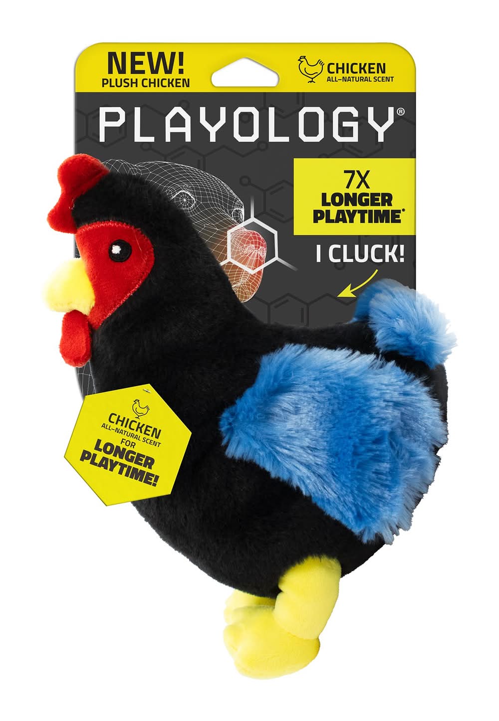 MEET THE PLUSH HEN: The Playology Plush Hen is perfect for medium or large dogs and designed to keep your pup engaged and entertained with every chew. Using our Encapsiscent Technology, this plush toy is embedded with an irresistible all-natural Chicken scent that is released as your dog plays. Playology's scented plush toys are designed to keep your dog engaged 7x longer than typical, unscented toys. Each Plush Hen is lightweight, soft, and features a built-in squeaker, creating a fun and interactive experience your dog will love. Whether your pup is chasing, chewing, or playing fetch, the Plush Hen encourages healthy play and exercise. When it’s time to clean up, simply rinse the toy with warm water or throw it in the washing machine. All Playology toys are designed for easy cleaning, ensuring they’re always ready for the next round of play. HAPPINESS GUARANTEE: At Playology, we're more than just toys we're about making tails wag and ending the toy graveyard blues If you encounter any issues or if your furry friend isn't overjoyed with our products for any reason, we're here to save the day. Your dog's happiness is our guarantee! • Color: Black • Size: Medium