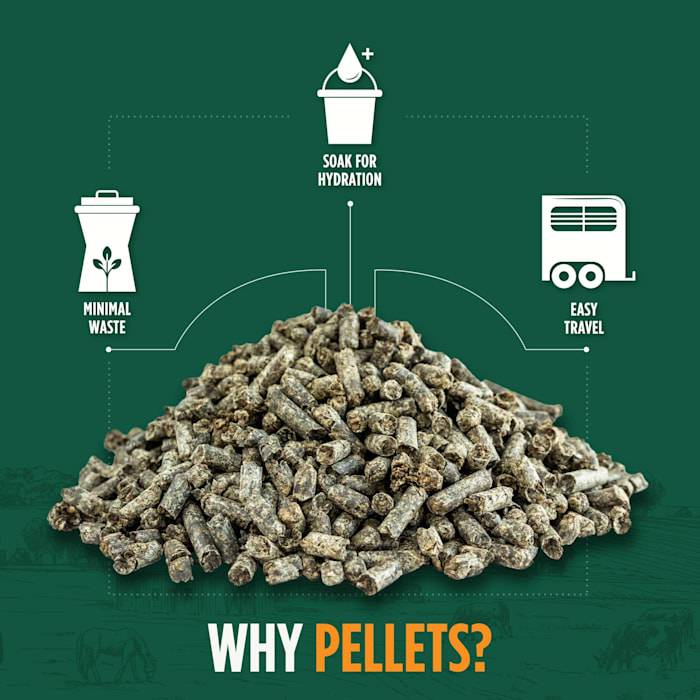 Pellets are high density 1/4 inch pellets formed from dried sugar beet pulp. Beet pulp is the pulp that remains after sugar has been removed from the sugar beet. A high calorie, low protein, low sugar fiber source for horses.