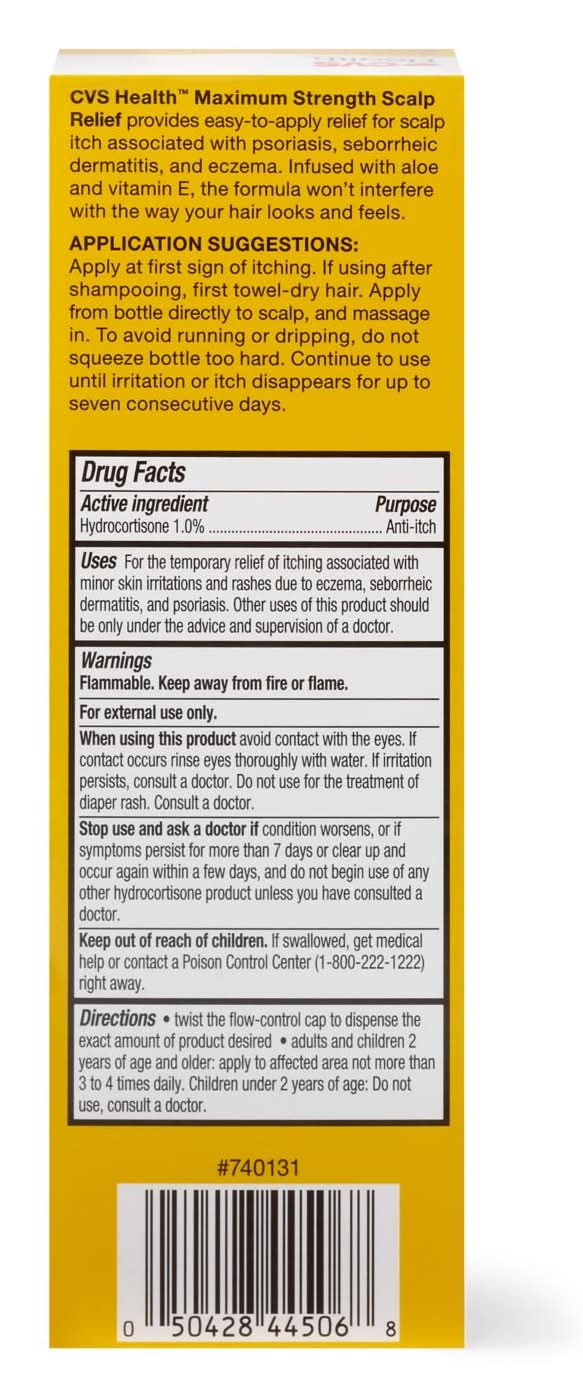 Helps relieve scalp itch associated with psoriasis, seborrheic dermatitis & eczema Maximum Strength Scalp Relief 1% Hyddrocortisone Infused with aloe & Vitamin E.