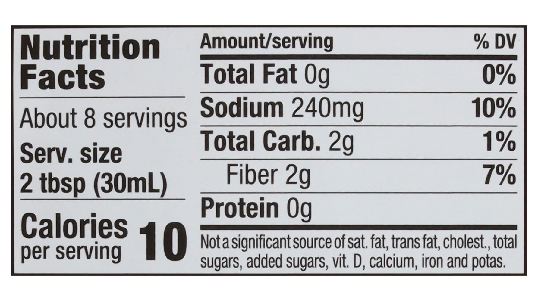 Ingredients: Water, Cider Vinegar, Dijon Mustard (Distilled Vinegar, Water, Mustard Seed, Salt, White Wine, Citric Acid, Turmeric, Tartaric Acid, Spices), Maltodextrin, Mustard Seed, Salt, Cellulose Gel, Honey*, Mustard Flour, Onion Powder, Lemon Juice Concentrate, Xanthan Gum, Dried Garlic, Natural Flavor, Sucralose, Potassium Sorbate and Calcium Disodium EDTA (to Preserve Freshness). * Adds a Dietarily Insignificant Amount of Sugar Contains: Mustard