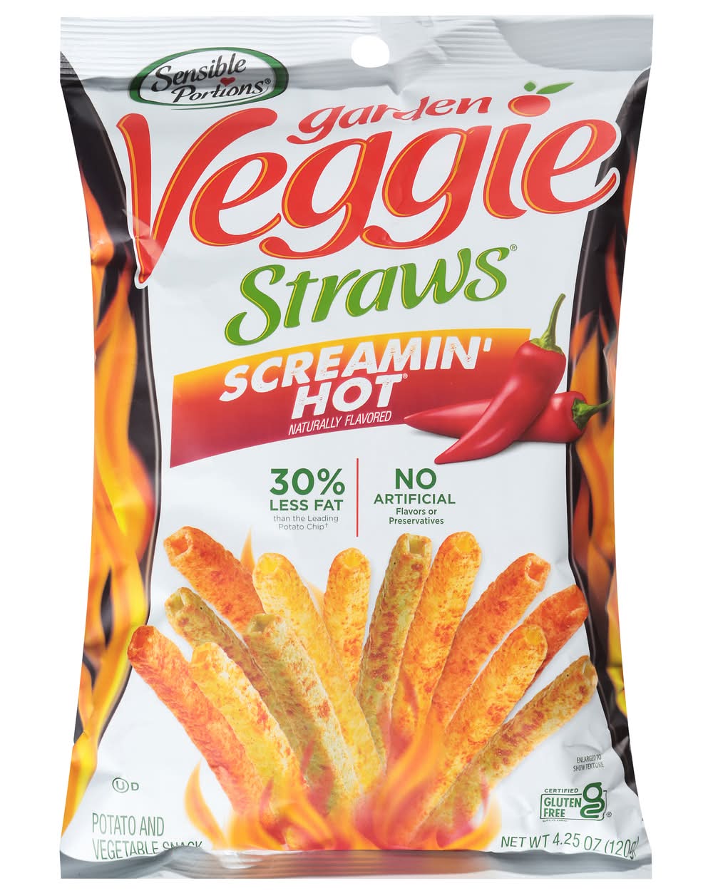 Sensible Portions Garden Veggie Straws Vegetable & Potato Chips, Screamin' Hot (4.25 oz)