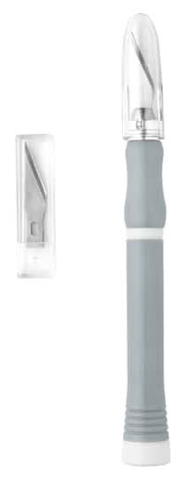 Creating your next masterpiece is easy when you have the best tools to work with. This knife is perfect for paper and fabric detail work! Gray blue handle . 6.2" (16 cm) length . Perfect for precision cutting . Cushion grip . Safety cap .spare blades (No.11)