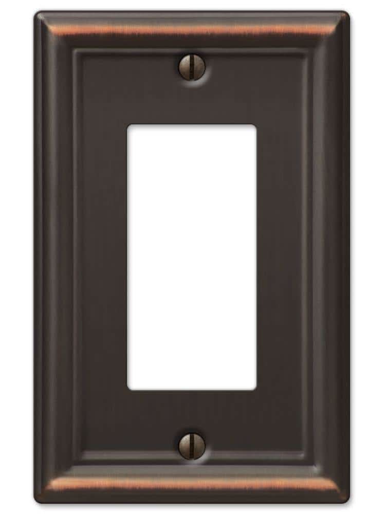 For over 25-year, Hampton Bay has delivered home decor essentials that compliment any decor with enduring style. Made from durable stamped steel, this stylish wall plate does more than just cover electrical boxes, adding a simple elegance to your decor. Decorating with wall plates is an easy and inexpensive way to make an immediate impact in your home. They provide a charming upgrade to your standard plastic ones by adding a refined, decorative accent to any room in your house. Color: Aged bronze