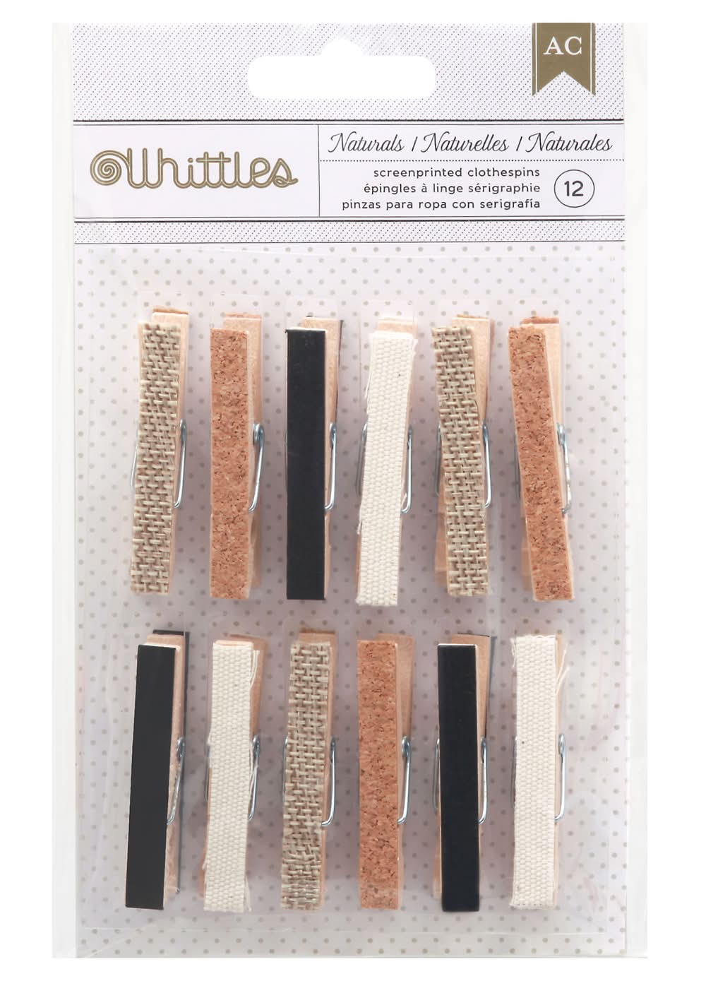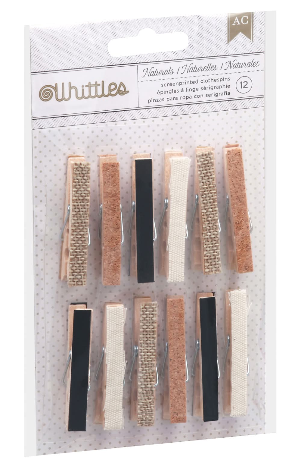 American Crafts Whittles Naturals Screenprinted Clothespins (12 ct)
