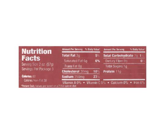 Beef, Water, Potassium Lactate, Contains 2% or less: Salt, Modified Corn Starch, Carrageenan, Sodium Phosphates, Sugar, Smoke Flavor, Natural Flavorings, Sodium Erythorbate, Sodium Diacetate, Sodium Nitrite, Coated with: Spices, Paprika, Caramel Color