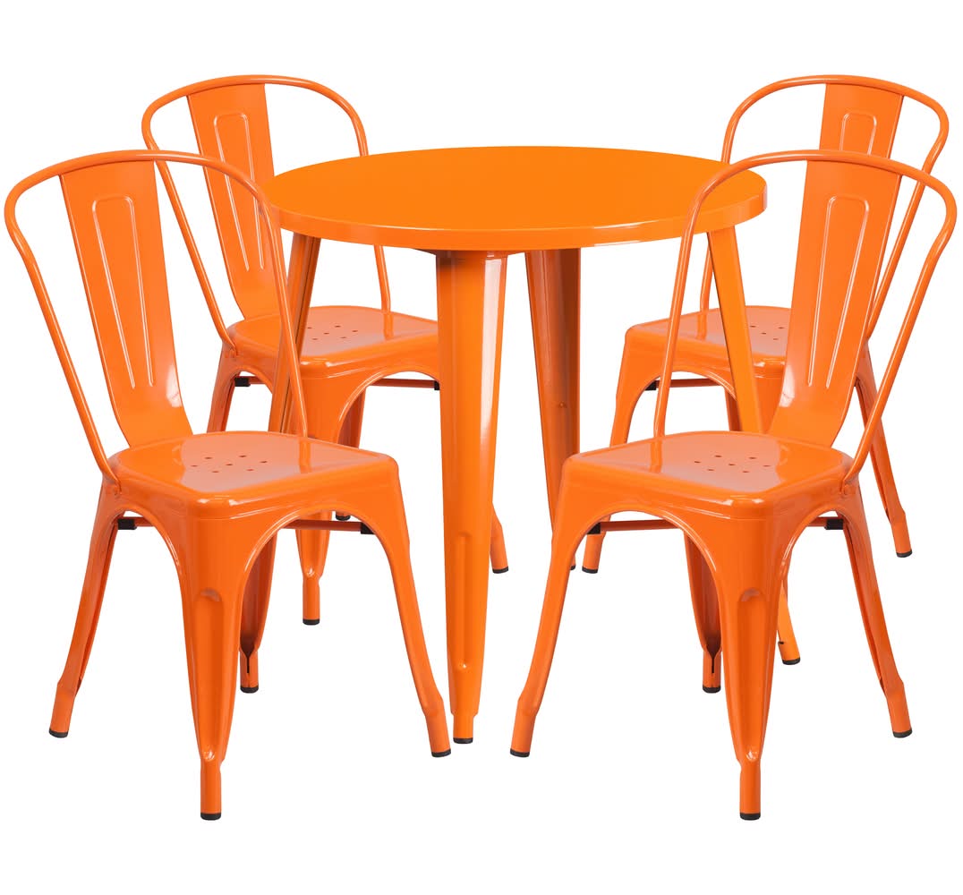 Flash Furniture Dalton Commercial Grade Round Metal Indoor-Outdoor Table Set, 30 in, Orange (5 ct)