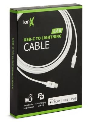IonX Usb-C To Lightning Charging Cable, 6.6 ft, White