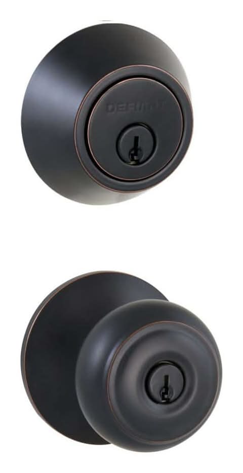 Guard against intrusions and keep your home and family protected with the Hartford Entry Knob and Single Cylinder Deadbolt Combo Pack from Defiant. This bundle includes 4-keys that lock/unlock both the entry knob and deadbolt, which are built to withstand drilling, sawing, picking and prying. The sturdy lockset affixes easily with the included fasteners, compatible with most residential exterior doors and requiring only a screwdriver to install