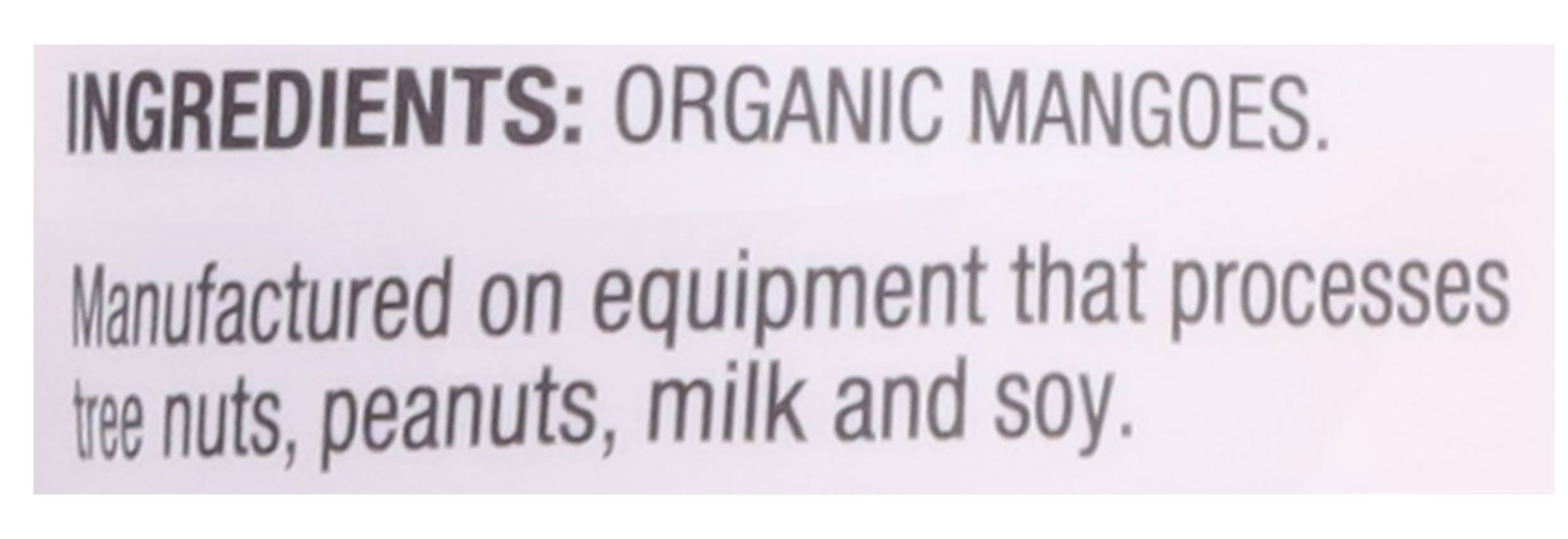 Ingredients: Organic Mangoes Contains: Tree Nuts, Peanuts, Milk, Soybeans