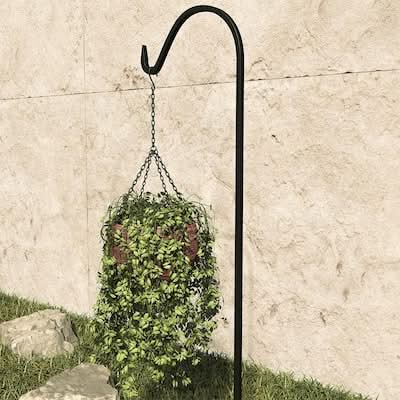 Showcase your hanging plants, birdfeeders, wind chimes, lanterns, and more using this sturdy, cold-formed steel shepherd hook. Place your shepherd hook in the ground, hook on a basket, ornament or anything you wish, and look at the simple yet amazing transformation. Easily supports 10 in. hanging baskets (maximum) up to 10 lbs. of weight. The attractive powder coat finish will resist corrosion for long lasting beauty. Cancer and Reproductive Harm - www.P65Warnings.ca.gov • Color: Black • Size: 48 in