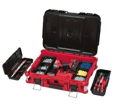 The PACKOUT modular storage system is the industry's most durable and versatile storage system. The PACKOUT tool box is constructed with impact resistant polymers and metal reinforced corners so it can withstand harsh jobsite environments. The tool storage box connects with all other PACKOUT system components via integrated locking cleats and features a 75 lbs. of weight capacity. An IP65 rated weather seal protects tools and accessories from rain and other jobsite debris. Interior organizer trays allow users to keep equipment organized to fit their needs. A carry handle and reinforced hinges ensure the tool box is easily transportable wherever it is needed. The PACKOUT modular storage allows users to customize and build their own storage system to easily transport and organize tools and accessories. [4/4 10:40 AM] Chandler ChittomCancer and Reproductive Harm www.P65Warnings.ca.gov - www.p65warnings.ca.govProposition 65 Warnings Website - Your right to know • Color: Red • Size: 22 In