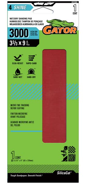 Gator Wet & Dry Sanding Sheets 3000 Grit, 3 2/3x9 in