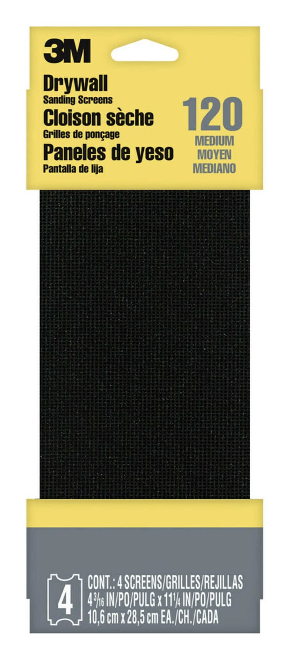 3M Drywall Medium Screen Sandpaper 120 Grit, 4 3/16x11 1/4 in (4 ct)