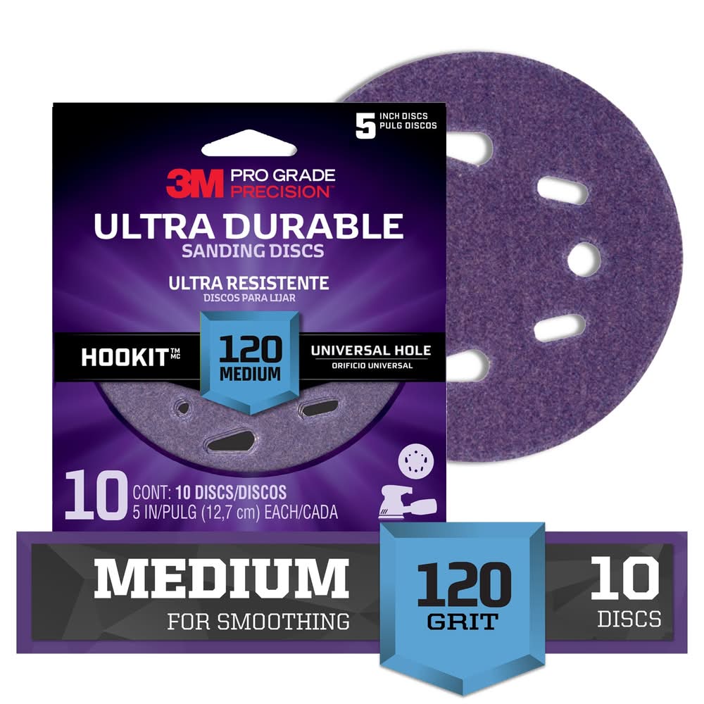 3M Pro Grade Precision 120 Grit Ultra Durable Sanding Discs, 5 in (10 ct)