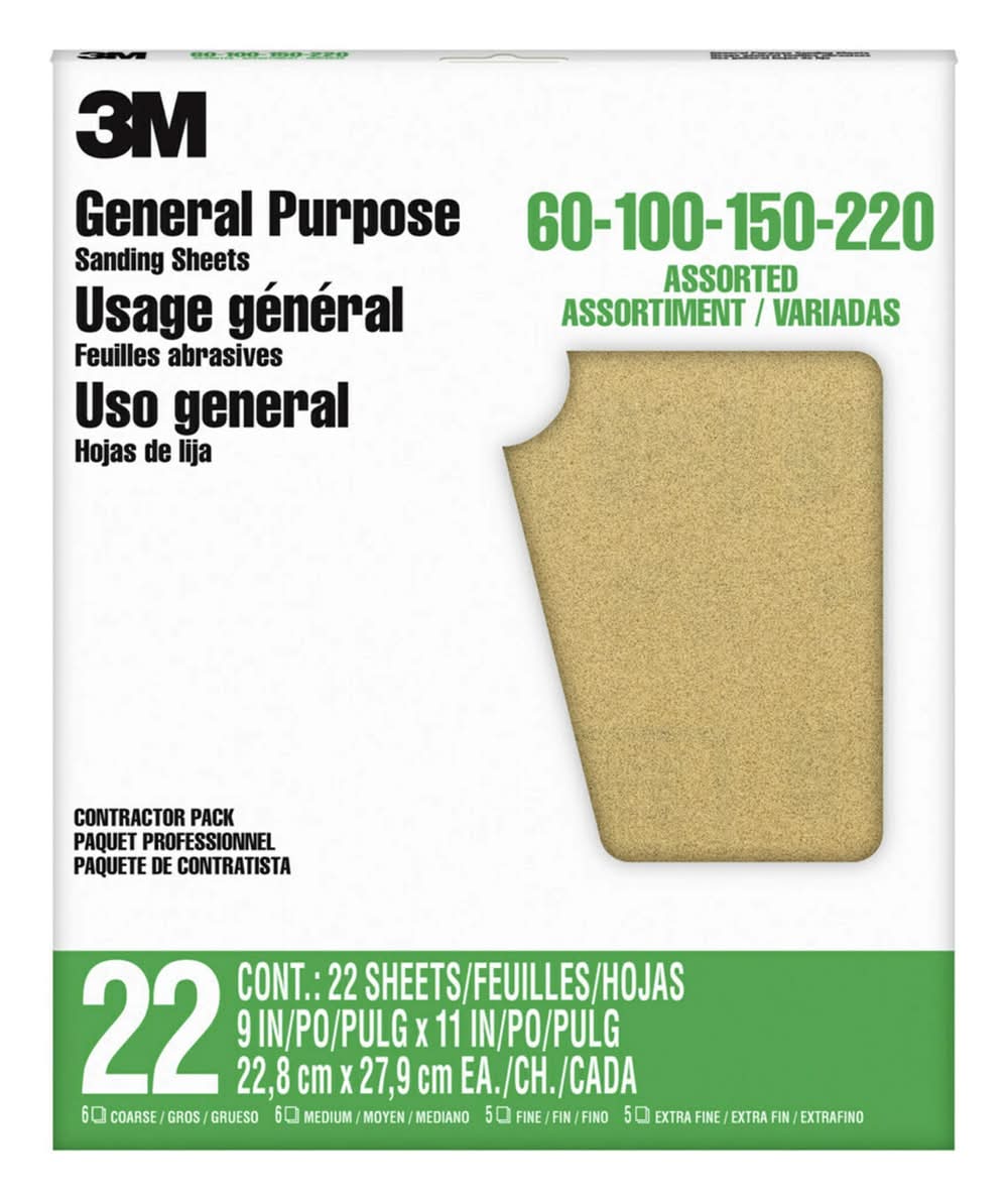 3M General Purpose Sandpaper Sheets, 9x11 in (22 ct)