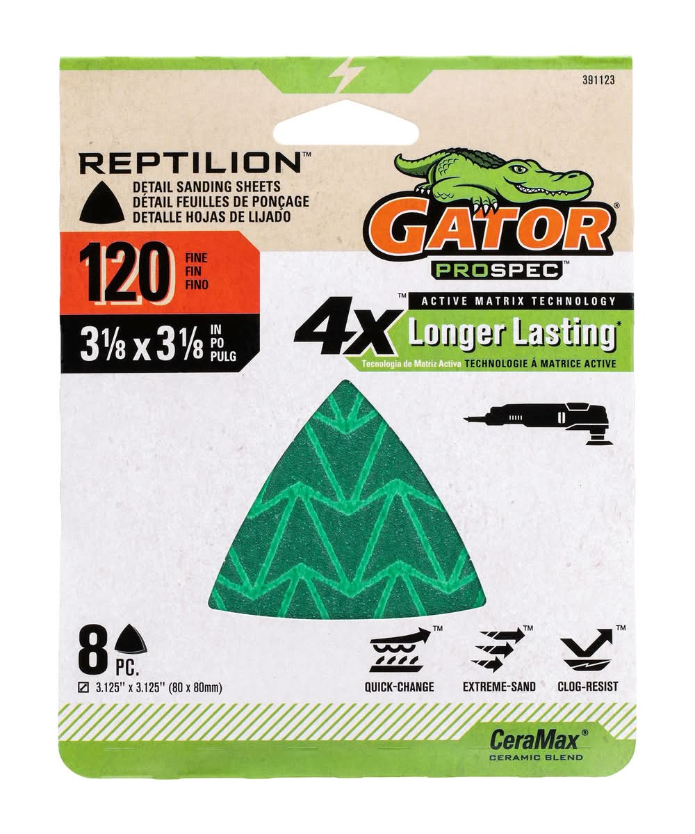Gator Reptilion Oscillating Ceramic Alumina 120 -Grit Detail Sandpaper, 3 1/8x3 1/8 in (8 ct)