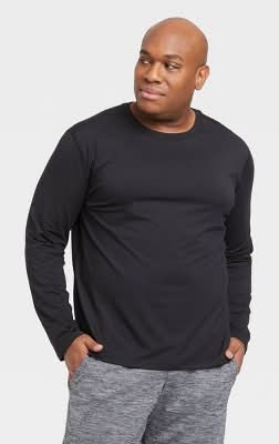 All In Motion Long Sleeve Performance T-Shirt, Men, XXL, Black