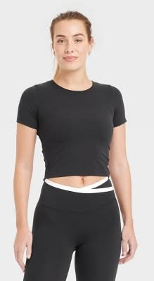 All In Motion Everyday Soft Cropped Short Sleeve T-Shirt, Women, M, Black