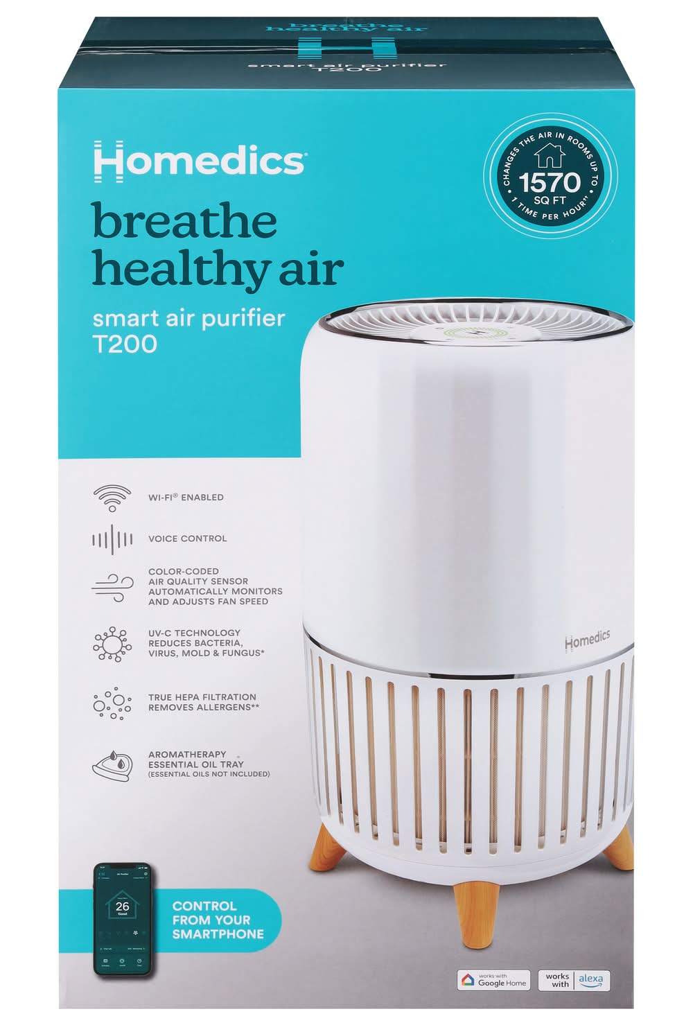 Homedics Breathe Healthy T200 Smart Air Purifier, White